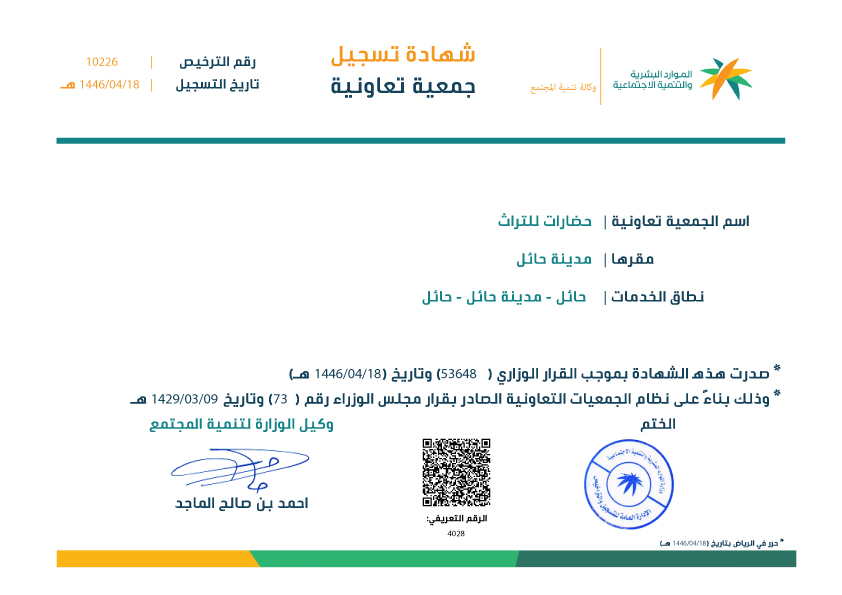 شهادة تسجيل الجمعية